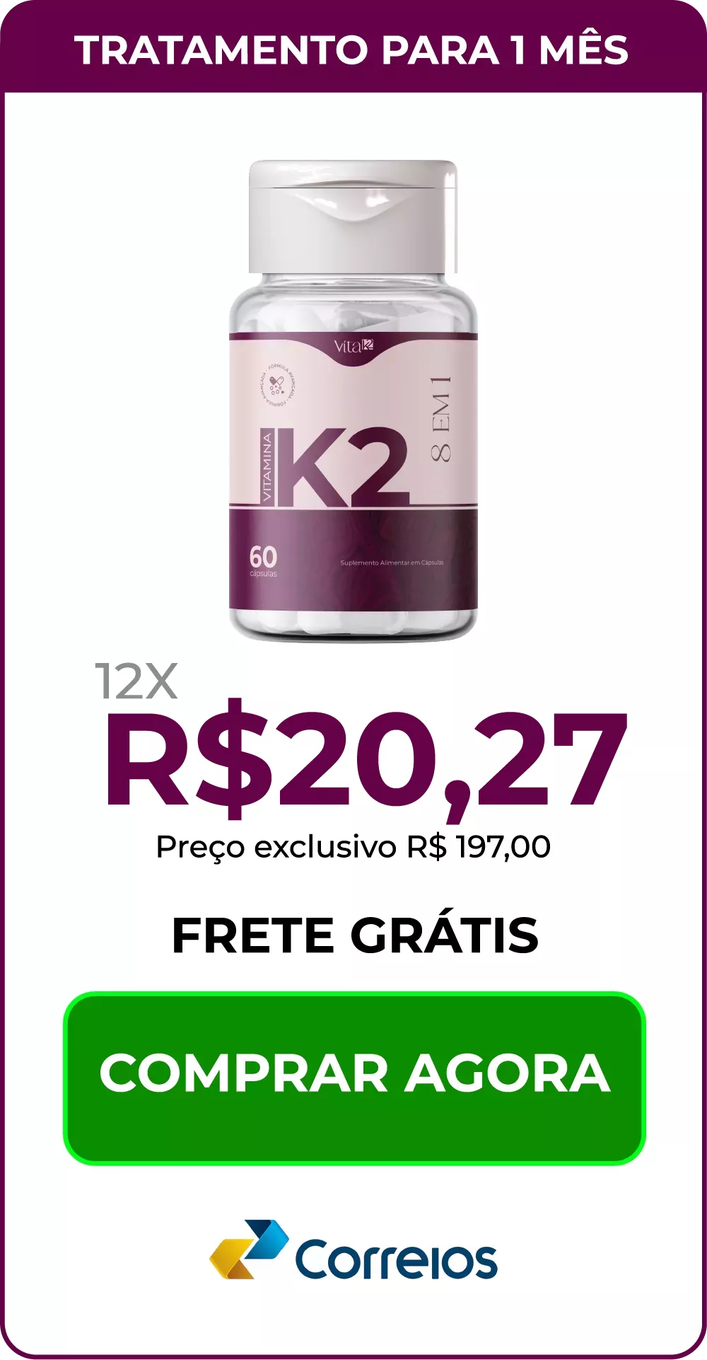 VitaK2 está disponível para compra online somente aqui, em nosso site oficial.
